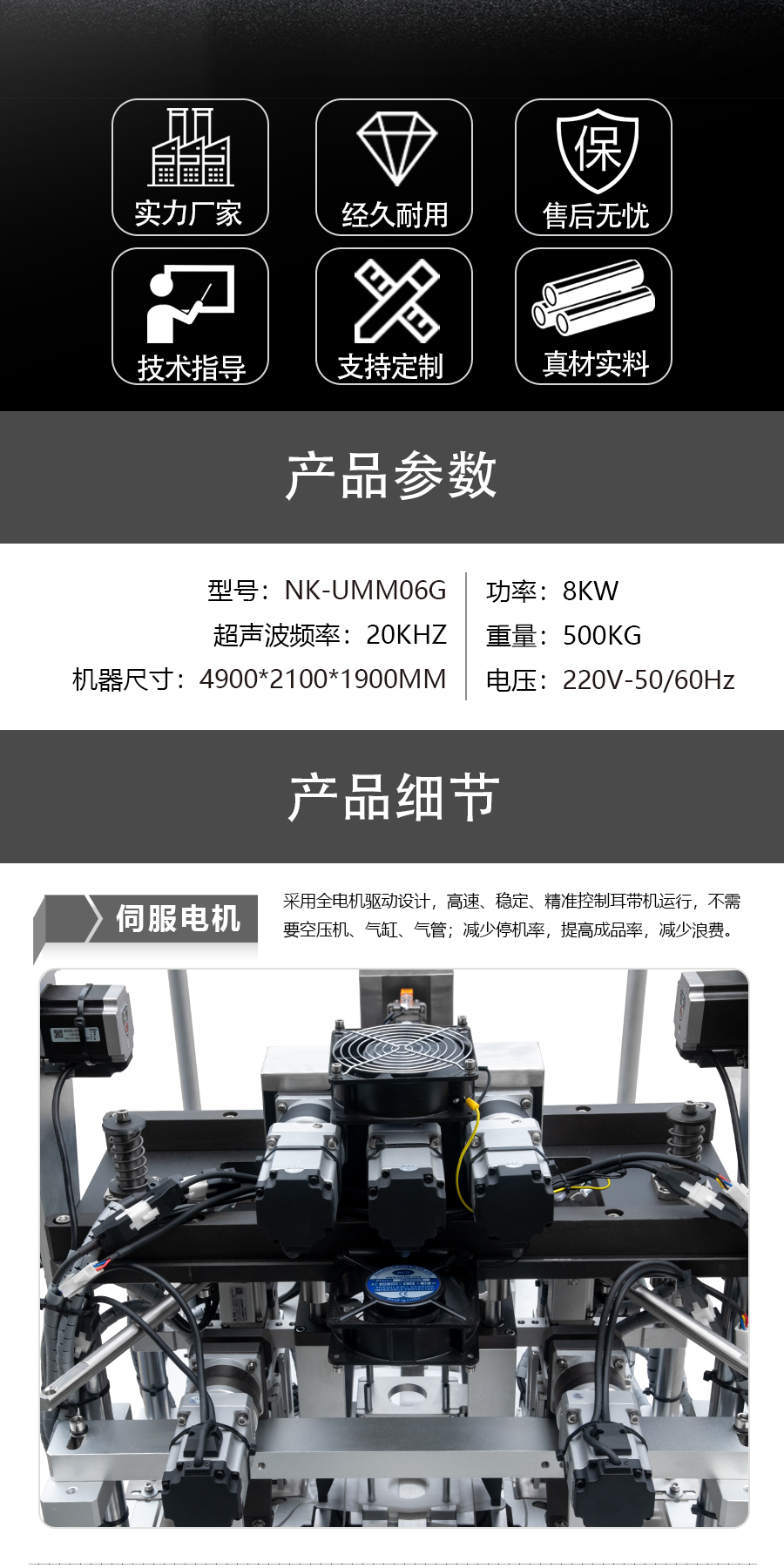 與傳統設備相比,這款全自動平面口罩機具有多項獨特優勢。首先,它不需要壓縮空氣,只需插電即可開啟生產,操作簡單方便。其次,采用模組伺服帶動,調試簡單輕松,即使你是新手也能迅速上手操作。