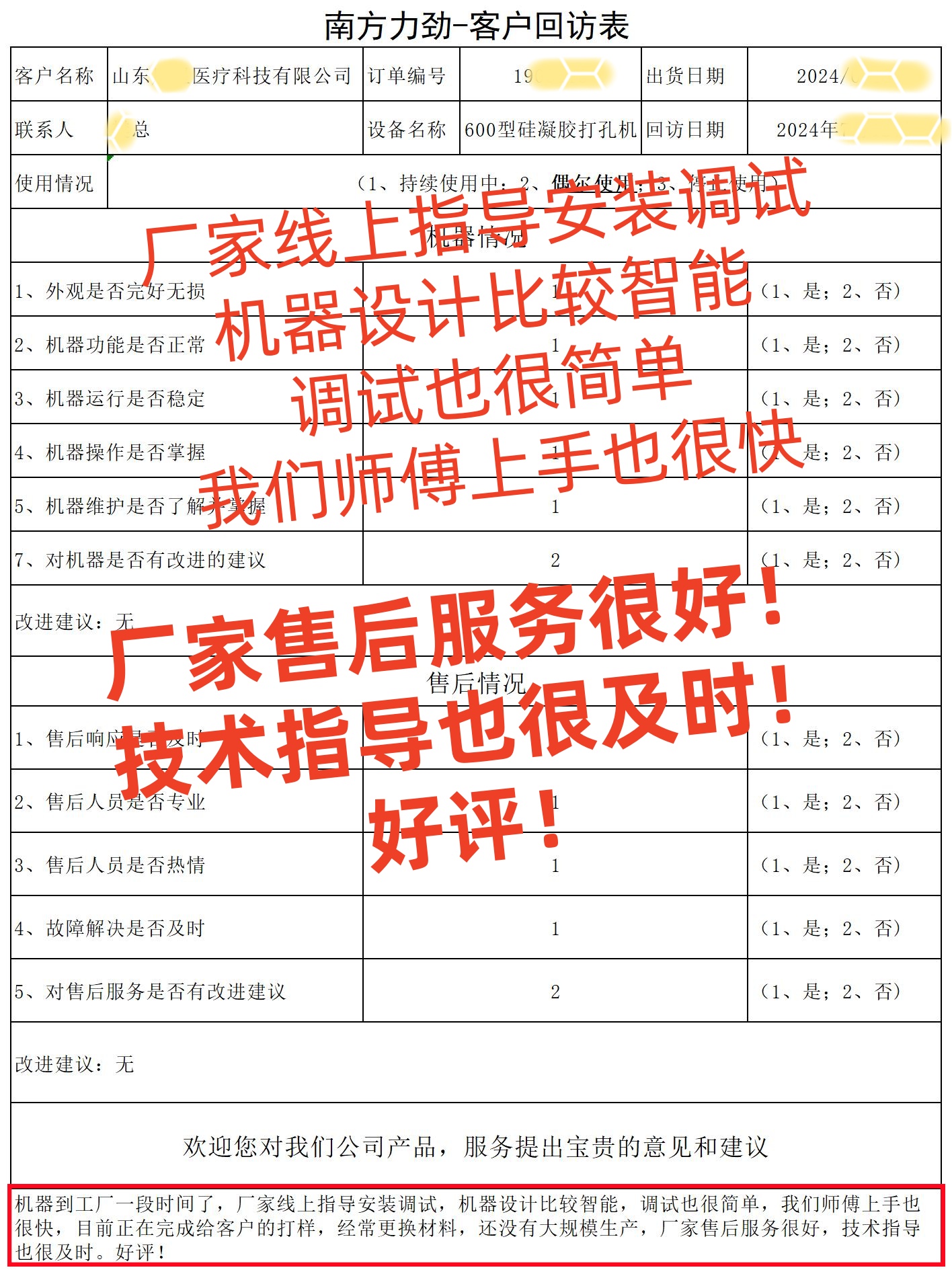 山東醫療器械行業客戶盛贊硅凝膠打孔機