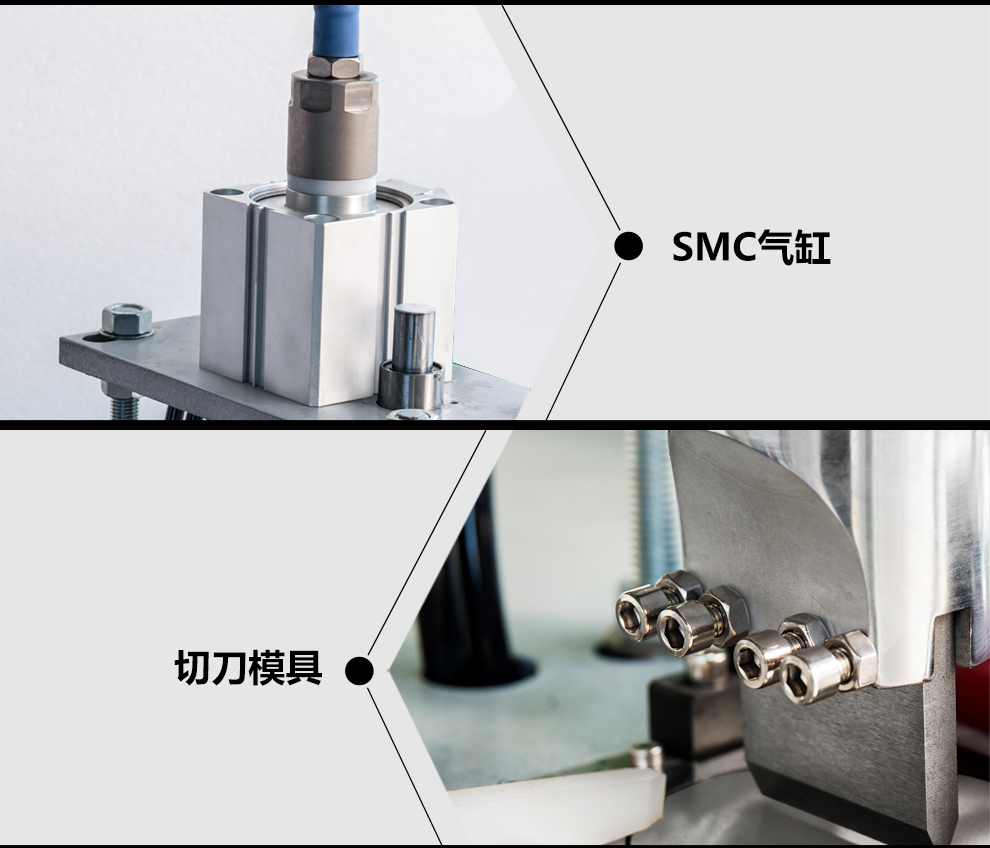 本款設備可剪切織帶、絲帶、綢帶、魔術貼等產品,剪切不發黑,不發焦,不散邊,自動封口。