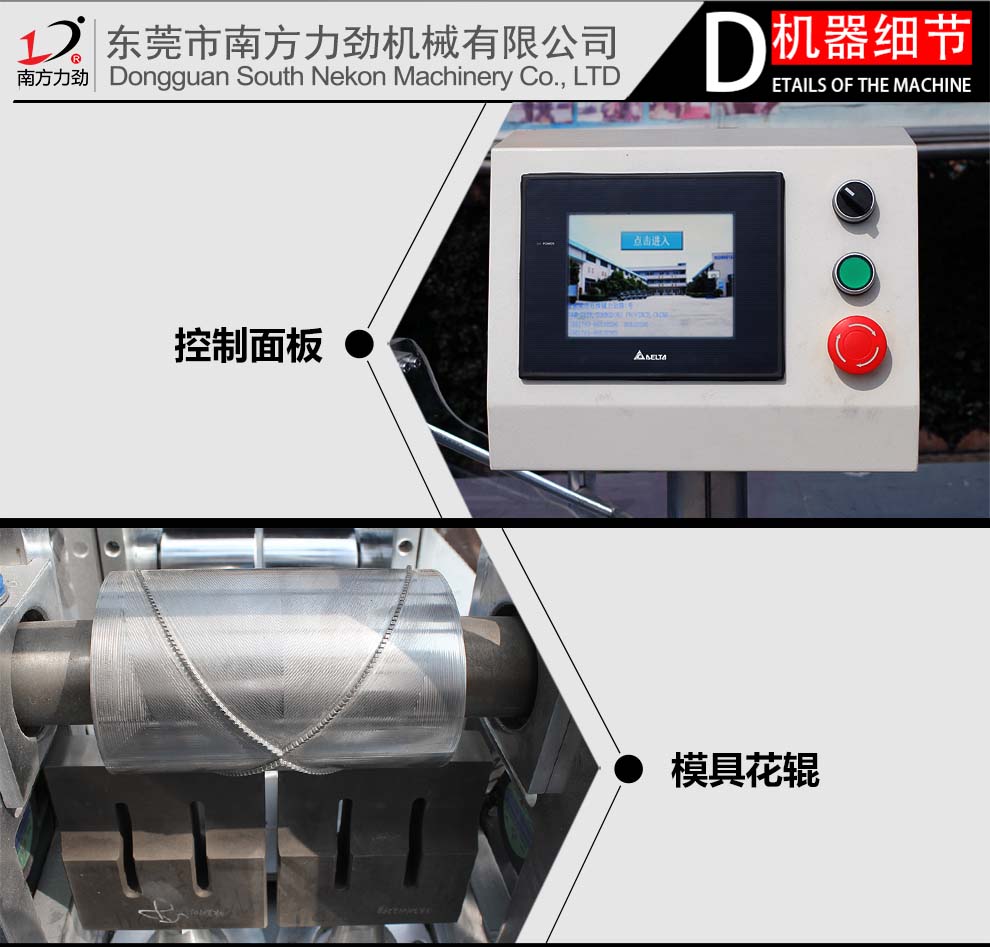 人機界面,僅需一人操作;控制面板簡單易學;PLC程控,穩(wěn)定性高,故障率低;可調節(jié)張力系統(tǒng)控制,成品美觀;減速剎車馬達;缺料自動感應停止,不使機器空轉;