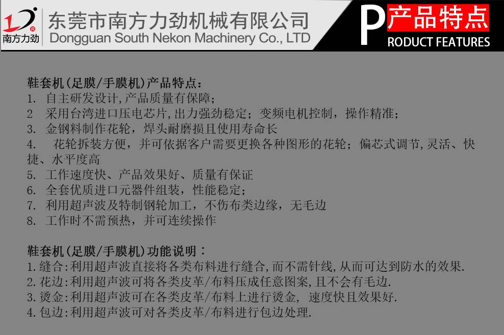 品名:超聲波足膜機(或超聲波足膜成型機)