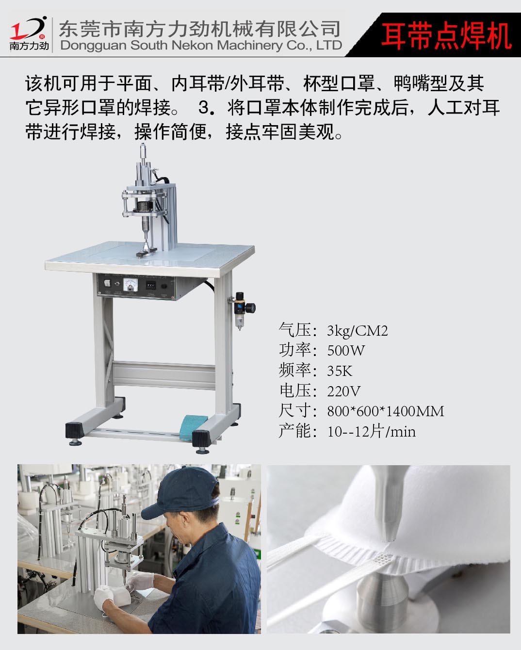 2.可用于平面、內耳帶/外耳帶、杯型口罩、鴨嘴型及其它異形口罩的焊接。